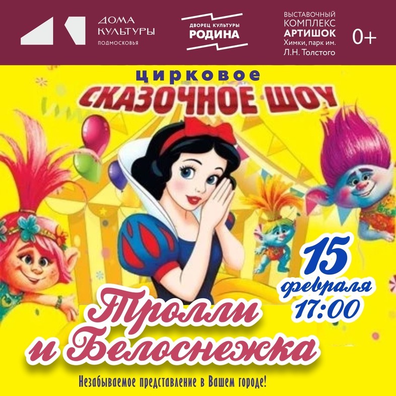 За основу театрально-циркового шоу «Тролли и Белоснежка» взяты герои мультфильма «Тролли» и сказки братьев Гримм «Белоснежка и семь гномов», эта версия рассказывает новую историю о принцессе, королеве и простом тролле, который влюбился в Белоснежку и стал для неё принцем.